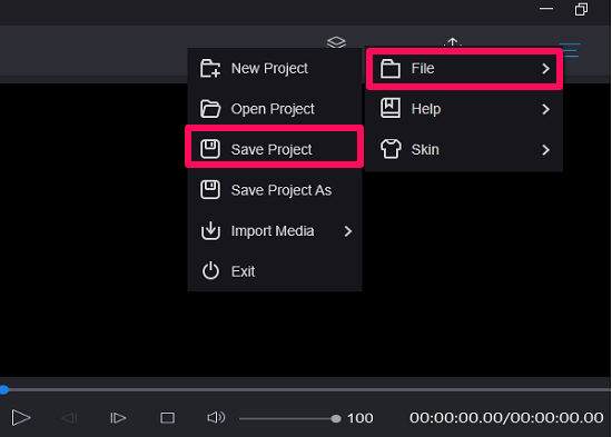 使用汉堡图标在右上角,单击文件,然后单击保存项目确保您当前的项目进度。同样,使用相同的选项启动新项目、打开旧项目或退出软件。