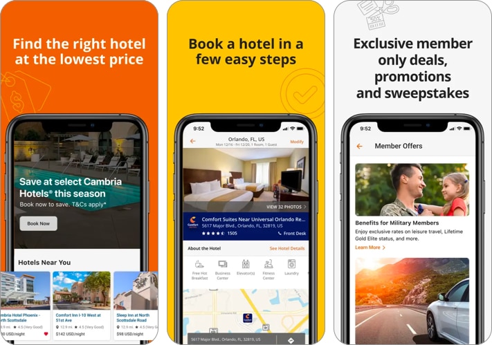 Choice Hotels 品牌包括 Clarion、Quality Inn、Radisson、Country Inn & Suites、Econo Lodge 等。 Choice Hotels 应用程序以合理的价格和遍布全球的地点而闻名,您绝对不会出错。