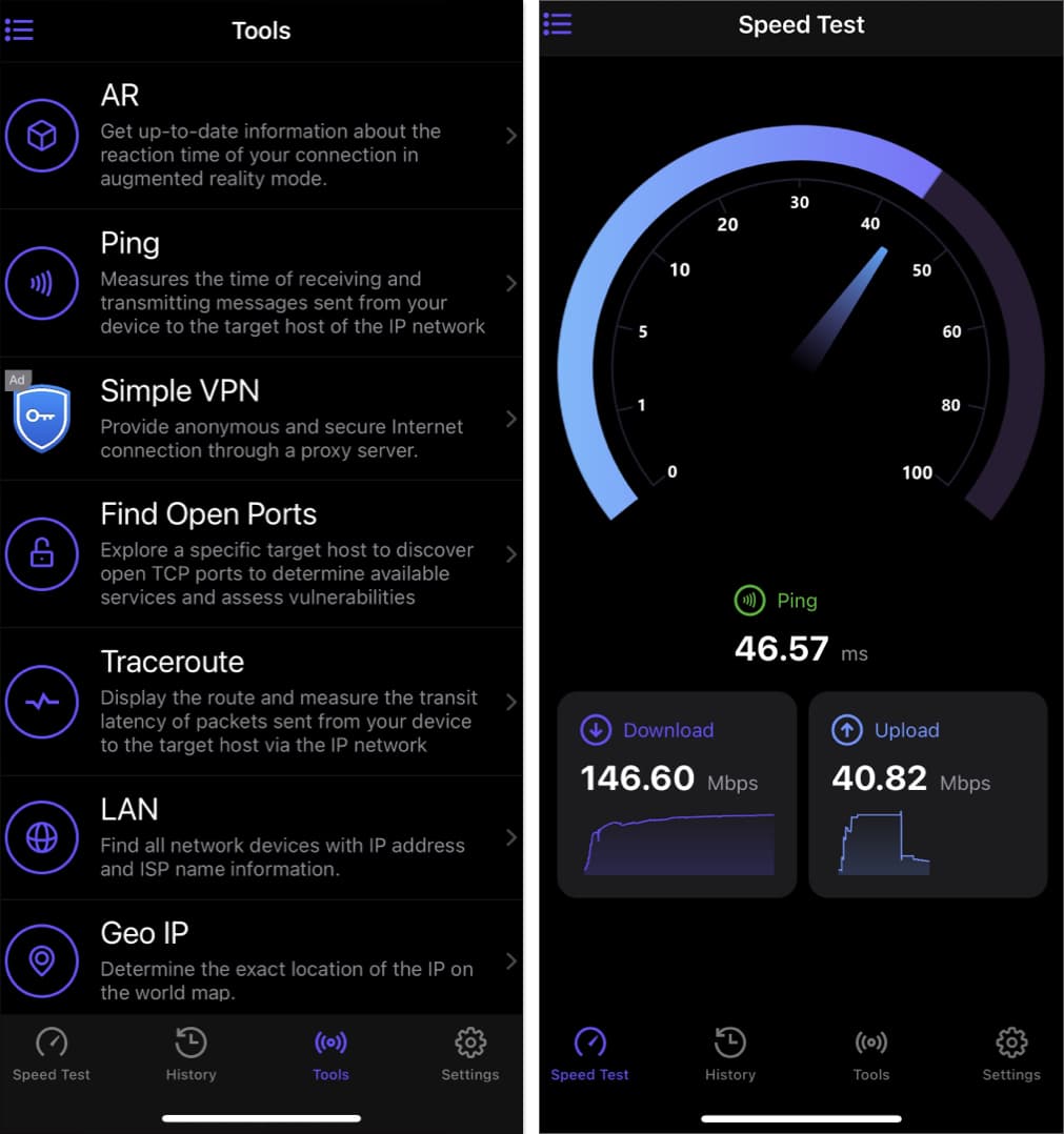 判决:选择速度测试和 Wi-Fi 分析仪 + 以获得流畅的应用程序体验和扩展的工具套件。