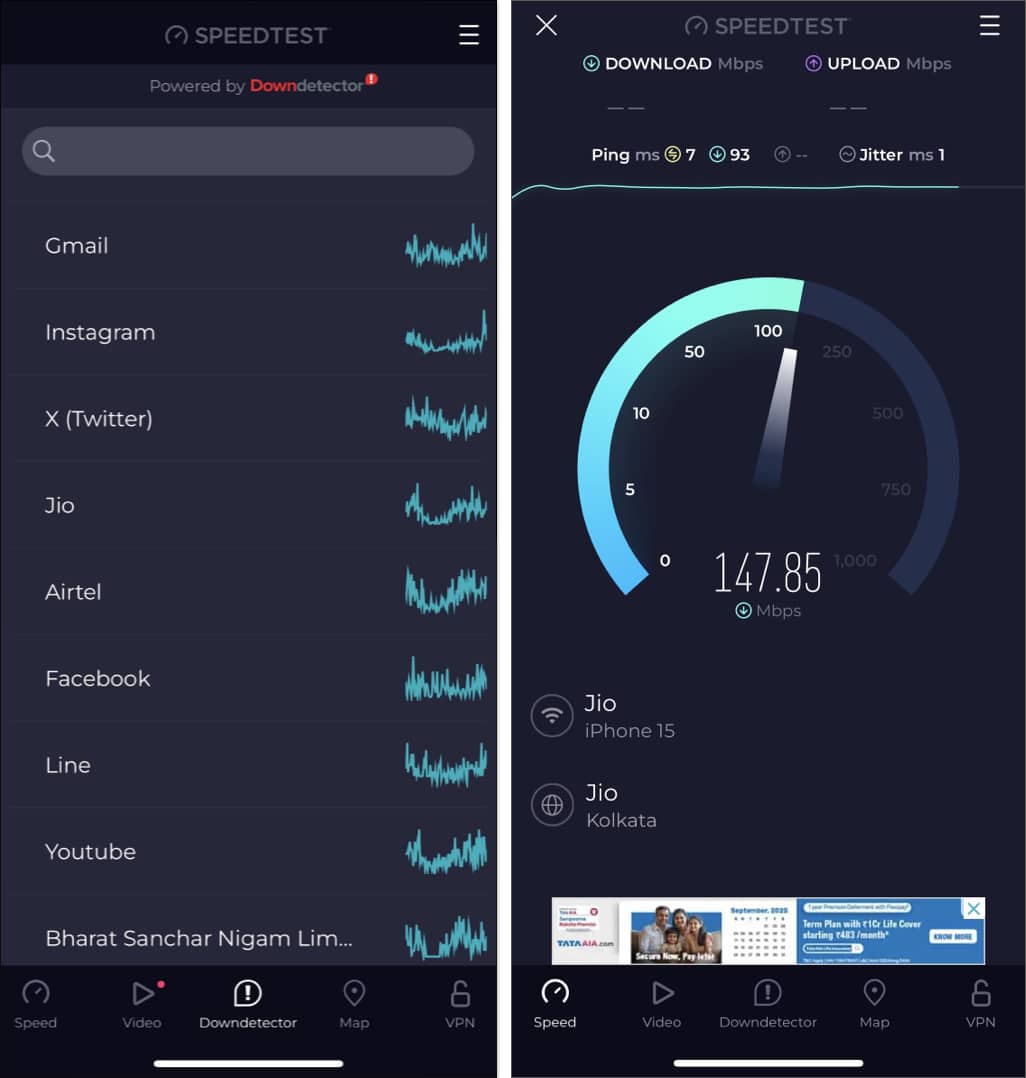 该应用程序具有 Ookla 响应灵敏且优雅的界面设计。除了快速检查我的 Wi-Fi 连接速度之外,我还检查了它的 Down detector 工具,该工具提供了主要网站及其服务器性能的信息。当您想要检查特定网站是否由于服务器问题而没有响应时,这特别有用。