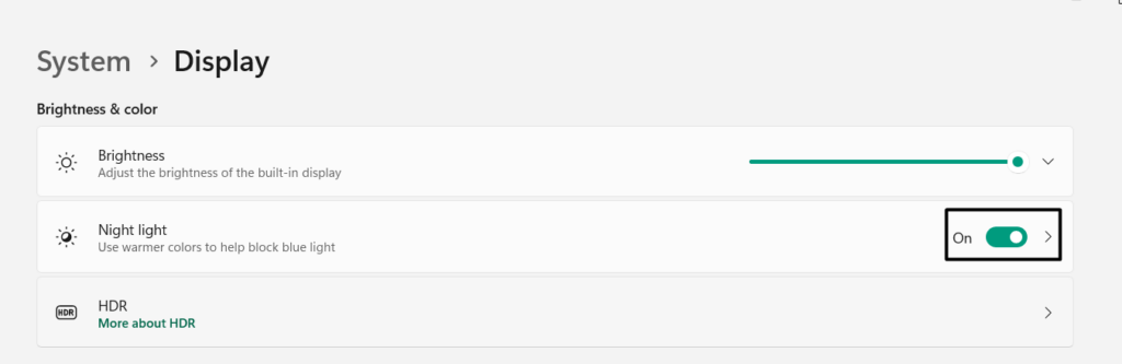 就像我们的手机一样,我们的电脑屏幕也会发出蓝光,对我们的眼睛造成伤害。因此,为了防止这种情况,Windows 11 配备了夜灯功能,可以将显示器的明亮颜色转变为暖色调,并防止我们的眼睛受到伤害。这是一项出色的 Windows 11 功能,您可以按照列出的说明在您的电脑上启用它:
