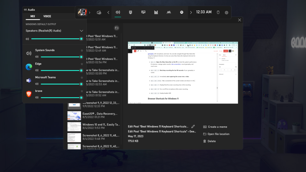 Windows 11 的另一个强大功能是其内置的屏幕录制工具,可让您录制 Windows 11 电脑的屏幕以及系统或麦克风音频。您可以使用 Windows + Alt + G 快捷方式在 Windows 11 电脑或笔记本电脑上打开该工具。