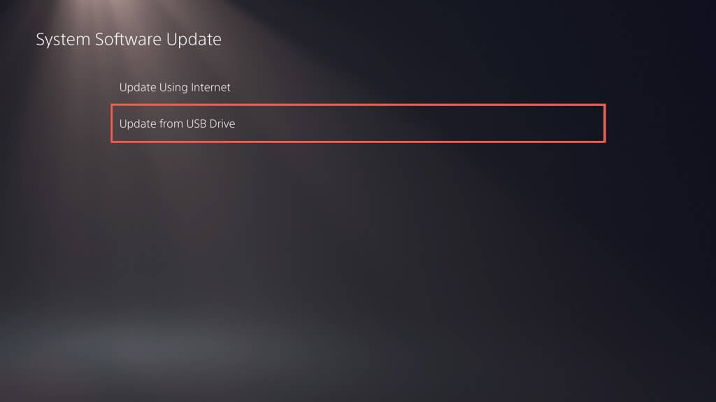 与在正常模式下更新 PS5 一样,安全模式允许您选择通过互联网或通过 USB 更新主机。如果您选择后者,请按照上述说明设置 USB 闪存驱动器。