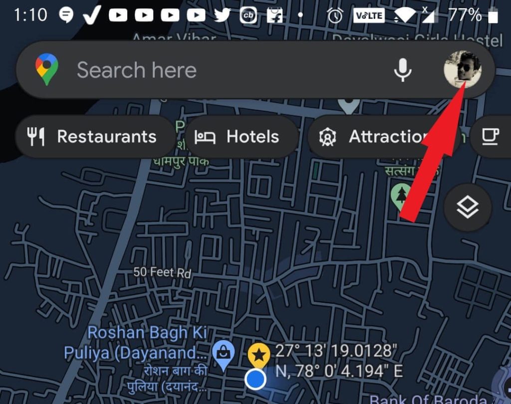 - 打开“ Google Maps”,然后从左上角点击您的个人资料图片。