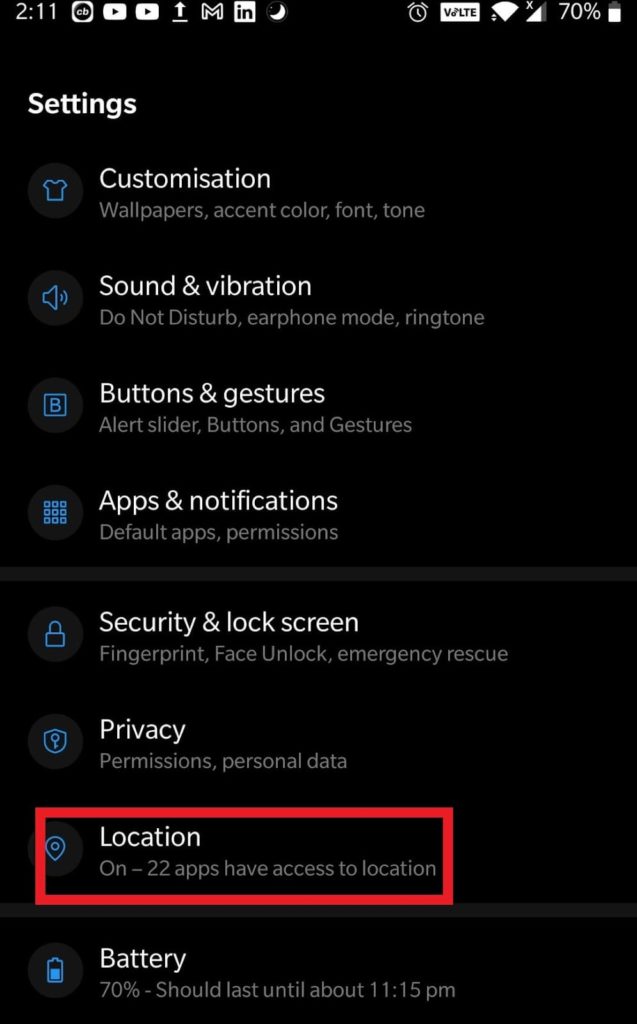 - 打开智能手机的“设置”,然后查找并点击“位置”。