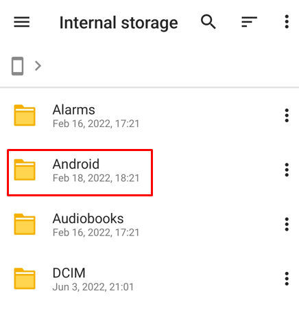 - 找到安卓文件夹并打开它。这是所有 Android 应用程序的存储位置。