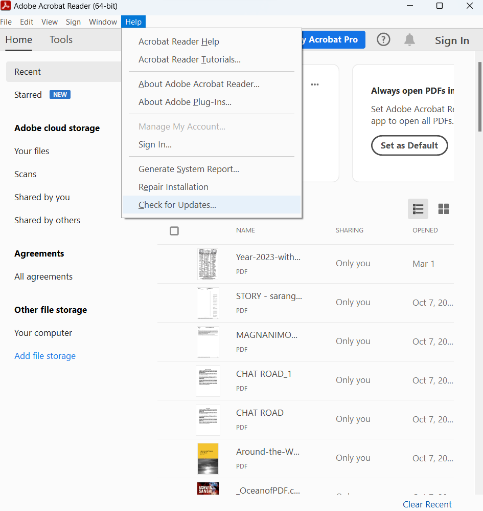 安装某些应用程序后,Acrobat Reader 是否开始崩溃?你可以卸载任何最近安装的应用程序完全然后检查 Adobe Acrobat Reader 是否正常工作。