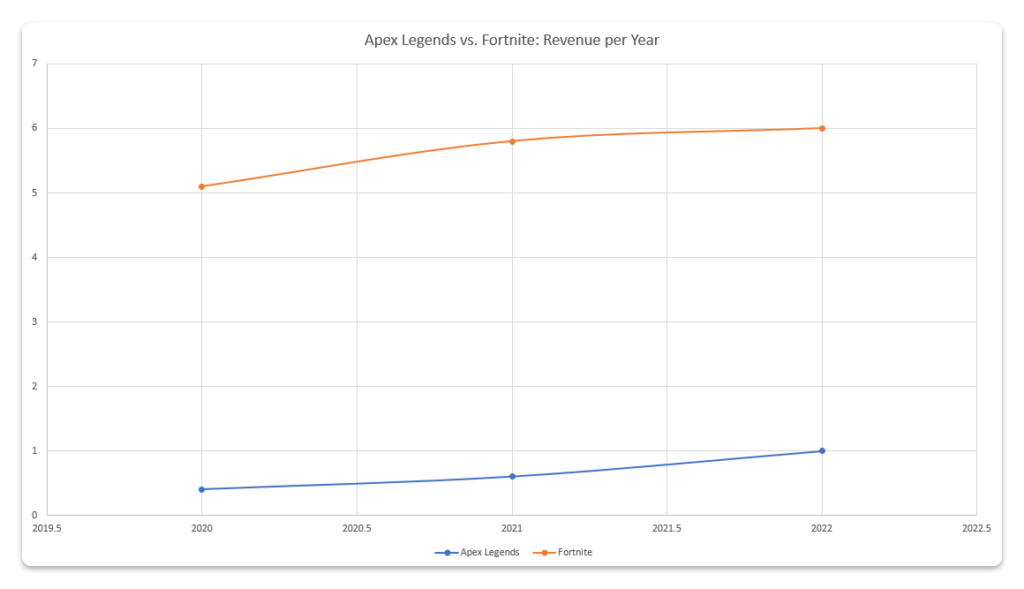 根据边缘,Fortnite 前两年收入 90 亿美元,远高于 Apex 前三年 20 亿美元。在此期间,大逃杀游戏的受欢迎程度突然飙升也是一个因素。
