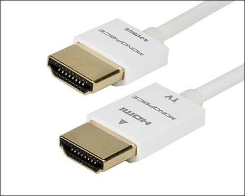 Monoprice 效率很高,可提供高质量的视频和音频。除了支持所有 HDMI 功能外,它还支持 HDMI 以太网通道。连接器头的设计非常有效,尺寸仅为 5/8 英寸宽和 1/4 英寸厚。