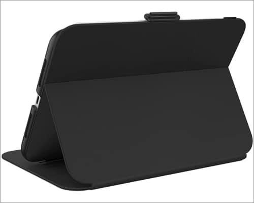 Speck 平衡对开式保护套时尚且灵敏。它可以保护您的整个平板电脑,并且一端有一个安全闩锁。它具有厚实的可转换封面,您也可以将其用作支架,方便查看和书写。除此之外还有镜头狭缝和 Apple Pencil 凹槽。