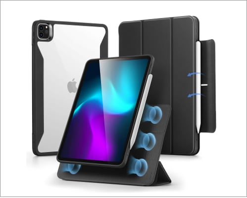 ESR 为 iPad Pro 提供真正的多功能保护壳。它将透明后壳与磁性可拆卸盖捆绑在一起。主要亮点是,您可以折叠盖子以设置六种不同的使用模式,包括可移动的纵向和横向。因此,您可以按照自己想要的方式使用 iPad。