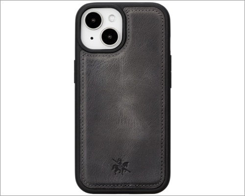 这是一款适用于 iPhone 15 的优质保护壳,兼具时尚感和保护性。它由优质牛皮制成,具有出色的耐用性和优雅的外观,随着时间的推移会产生铜绿。
