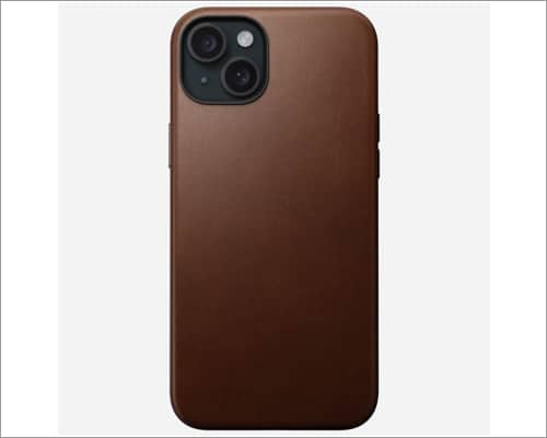 NOMAD 现代皮革保护壳采用全粒面皮革制成,与 iPhone 15 Plus 的优雅设计相呼应,巧妙地为其增添了额外的魅力。此外,这款可持续采购的皮革套随着时间的推移会产生铜绿,呈现出深色、丰富的表面效果。