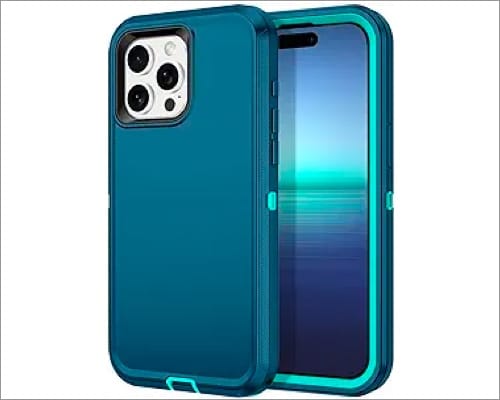 I-HONVA 重型保护壳可能是我列出的 iPhone 15 最佳坚固保护壳中的最后一个,但相信我,它提供的保护是无与伦比的。该外壳采用坚固的三合一设计,由 PC 聚碳酸酯和高级硅制成。