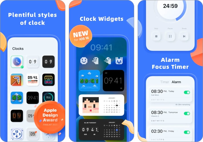 对于希望以优雅方式补充 iPhone 待机模式的用户,MD Clock 随时为您服务。该应用程序因其一流的功能和与 iPhone 主屏幕无缝集成的时尚设计而受到许多用户的欢迎。用户可以使用各种时钟样式、字体选项和颜色主题进一步自定义 MD 时钟。