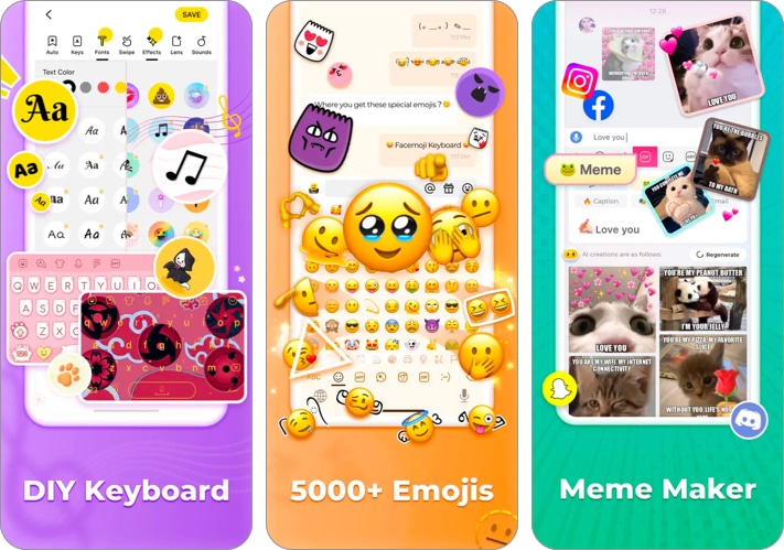 如果您想在短信中脱颖而出,Facemoji 可以帮助您实现这一目标。它支持各种时尚和装饰字体以及超过 5000 种表情符号。要创建个性化贴纸,此键盘中的 DIY Avatar Sticker 可以根据您的脸生成 memojis,您可以稍后分享。