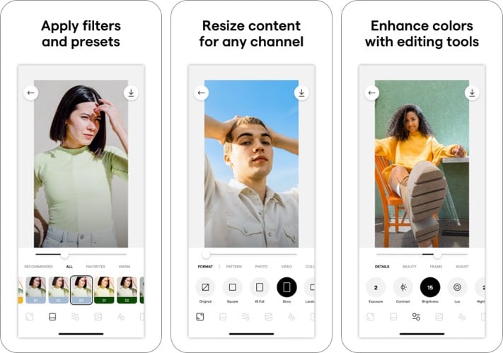 使用由顶级摄影师和影响者设计的 500 多种滤镜,将您的照片提升到一个新的水平。有些可以免费使用,而另一些则需要应用内购买。您可以立即提升任何镜头并使其完美适合社交媒体。