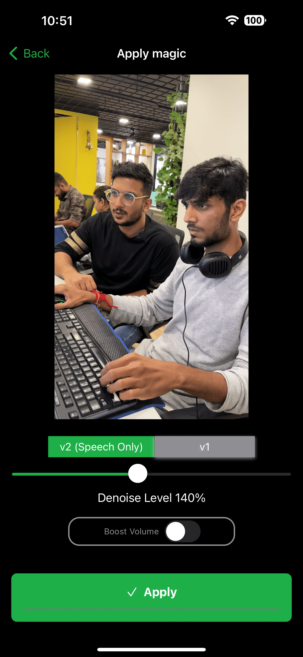仅语音功能可增强说话者的声音并消除背景中的所有内容,非常适合播客或有声读物。此外,假设您感觉音频的音量很低。在这种情况下,您可以使用音量增强功能来增加任何音频的音量,无论是在噪声消除之前还是之后使用。