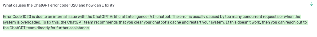- 内部 ChatGPT 问题。有趣的是,如果您询问 ChatGPT 是什么原因导致此错误,它会指出这是由于“ChatGPT 聊天机器人的内部错误”造成的,例如并发请求过多且服务器过载时。这还包括 ChatGPT 服务与第三方应用程序一起使用时的错误配置。
