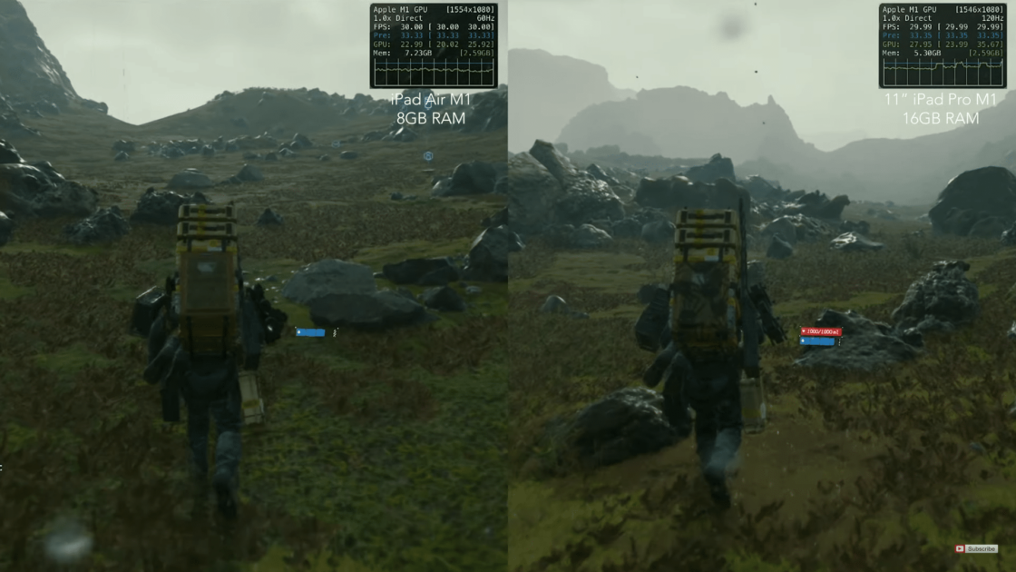 令人印象深刻的是,M1/M2 iPad 可以处理像《死亡搁浅》这样要求严格的 AAA 游戏。该游戏运行流畅,帧速率基本稳定,在平板电脑上提供了令人惊讶的类似游戏机的体验。