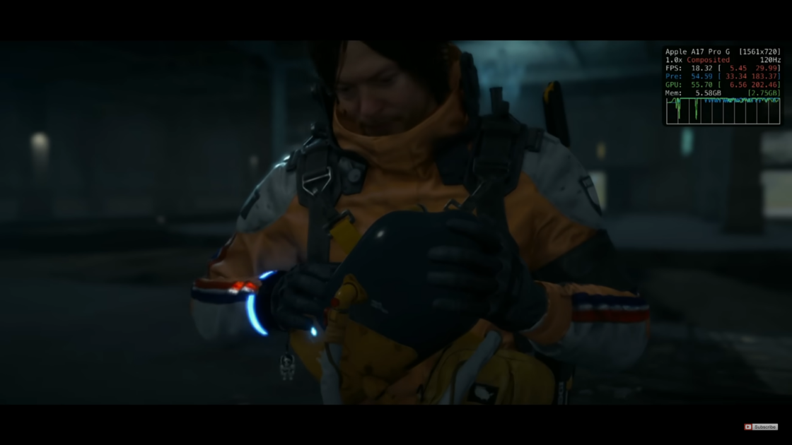 尽管配备了强大的 A17 仿生芯片,iPhone 15 Pro 仍难以在《死亡搁浅》中保持一致的帧速率,频繁且明显的帧速率下降严重影响了游戏的流畅度。