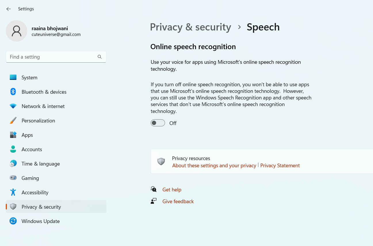 3. 现在您可以打开/关闭Windows 语音识别选项。