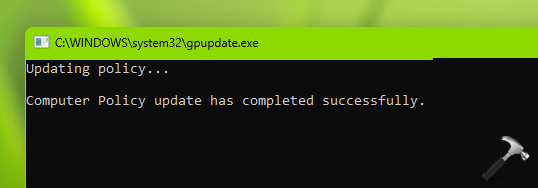 + R键和类型gpupdate /force命令。它将很快更新计算机策略。