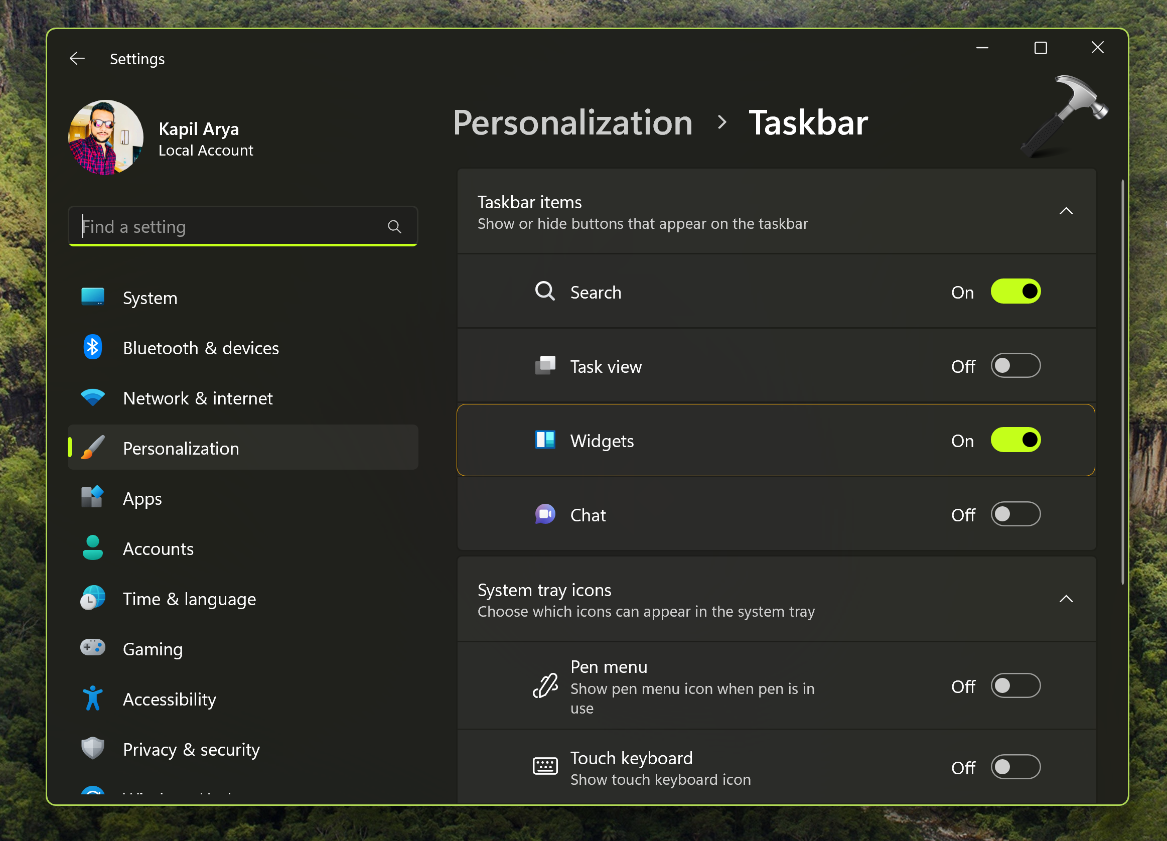 在这里,值得一提的是,小部件不能使用其自己的设置来禁用。您需要依靠“设置”应用程序、组策略或注册表来禁用小部件功能。
