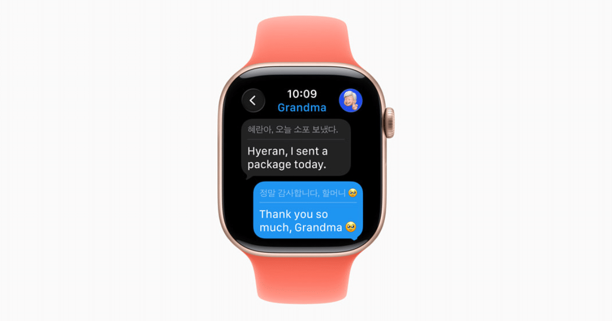 即使对方没有使用 iPhone,实时翻译也能正常工作。它还扩展到 iPadOS 26,并支持相同的三个核心应用程序。对于使用兼容 Apple Watch 型号(例如 Series 9、Series 10 和 Ultra 2)的用户,watchOS 26 也将提供消息翻译功能。