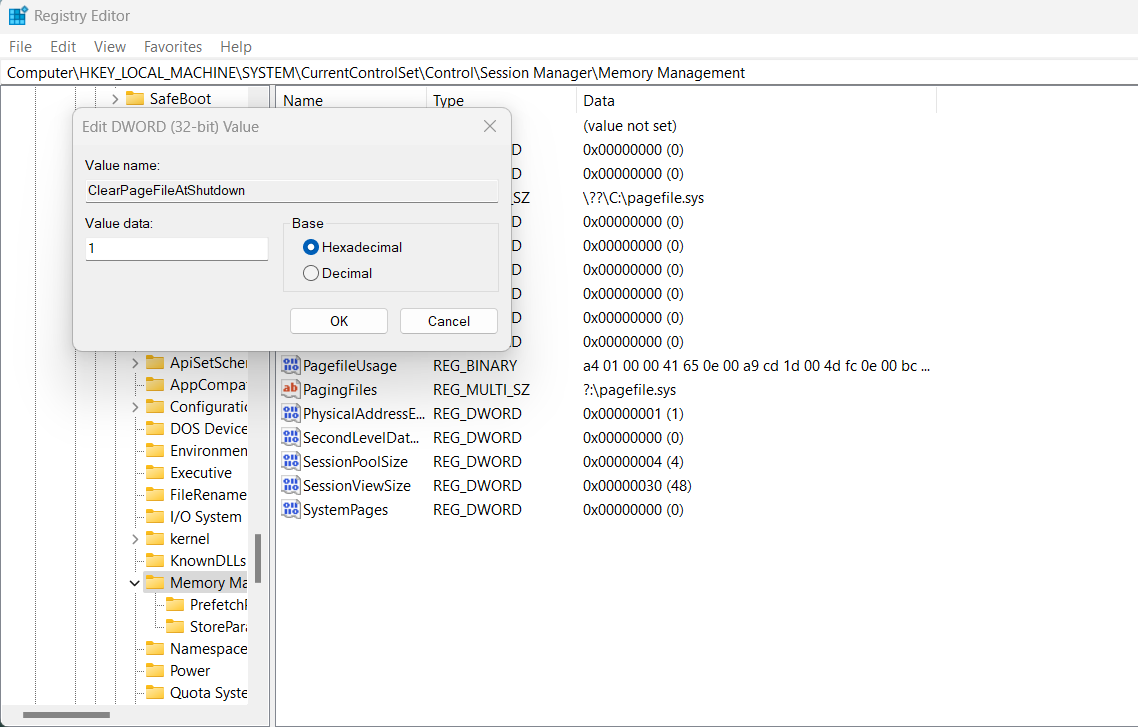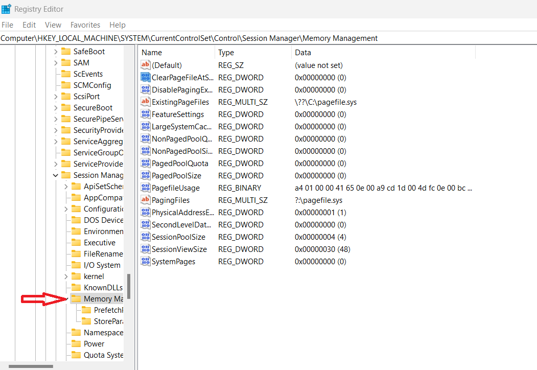 ComputerHKEY_LOCAL_MACHINESYSTEMCurrentControlSetControlSession ManagerMemory Management