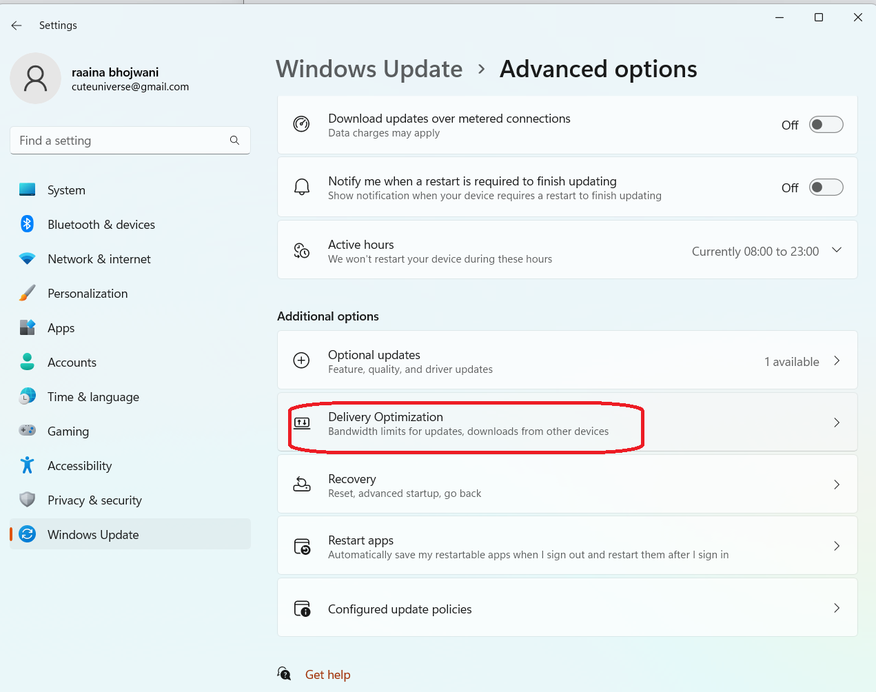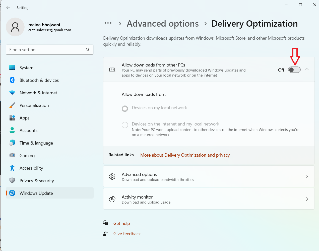 导航至路径设置>Windows更新>高级选项>送货 优化.