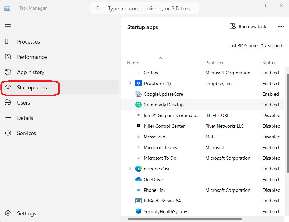 右键单击开始按钮并选择任务管理器。在出现的窗口中单击“启动应用程序”。右键单击列表中的任一程序,然后单击“禁用”。