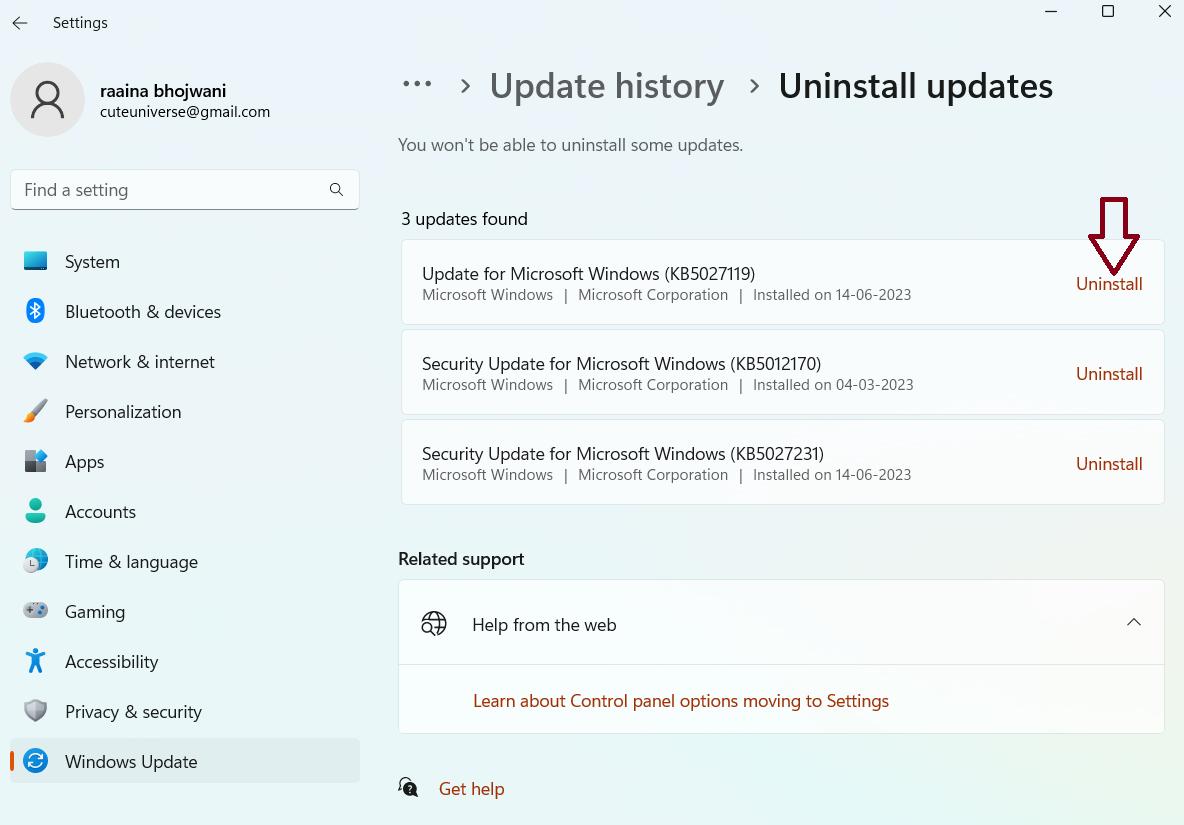 修复 8:卸载更新以修复文件资源管理器在 Windows 11 上无法运行的问题