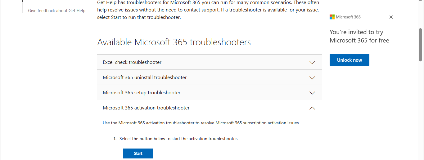 步骤2-接下来,转到 Microsoft 365 激活疑难解答选项,然后按照电脑屏幕上显示的说明进行操作。