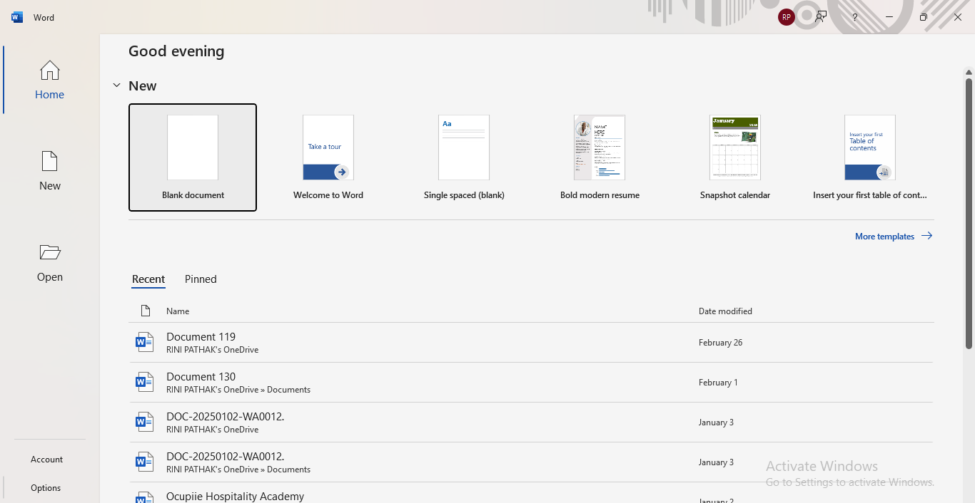步骤1-首先,转到任意 Office 应用程序,然后转到帐户。