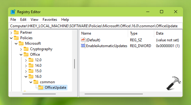 HKEY_LOCAL_MACHINESOFTWAREPoliciesMicrosoftOffice16.0commonOfficeUpdate