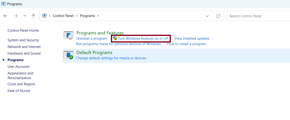 3. 单击打开或关闭 Windows 功能。