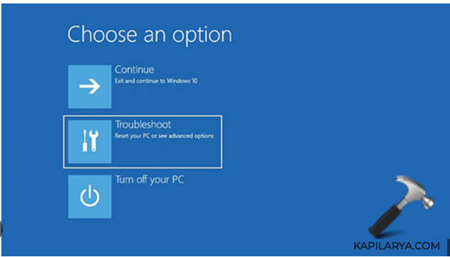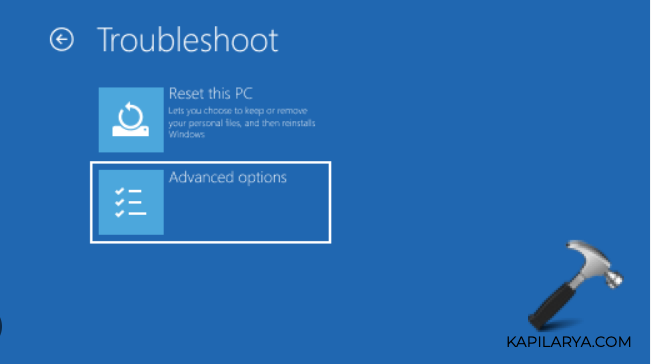 4. 在“疑难解答”屏幕上,单击“高级选项”。