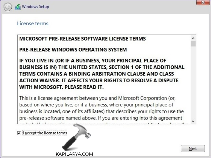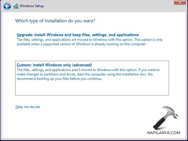 6. 接受许可条款并选择“自定义:仅安装 Windows”。