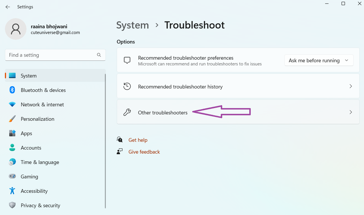 - 然后在设置窗口中点击系统然后点击故障排除.