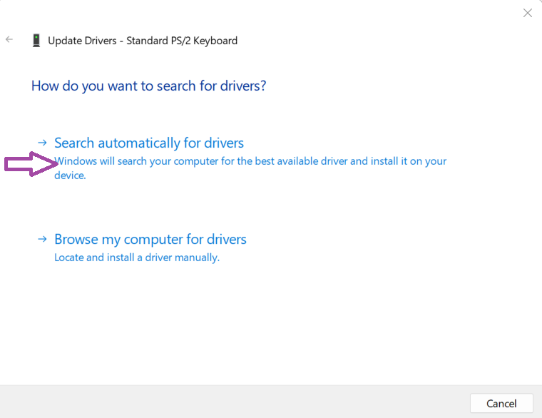 - 接下来,单击更新驱动程序> 然后点击自动搜索驱动程序并按照屏幕上的说明进行操作。
