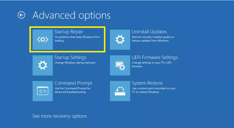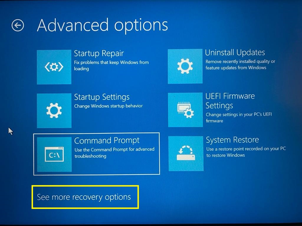 5. 现在,单击“查看更多恢复选项”。