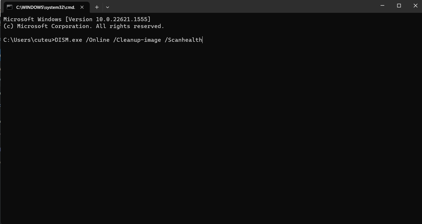 - 写命令DISM.exe /在线/Cleanup-image /Scanhealth并击中进入。