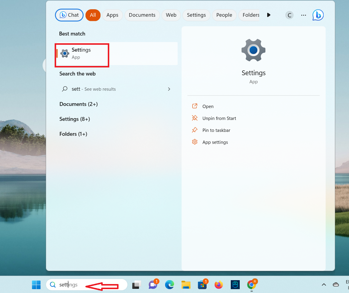 - 打开设置通过按视窗+我键一起或搜索设置在搜索在您的任务栏中给出。