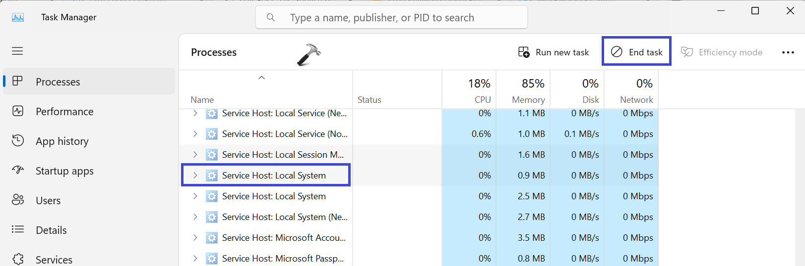 此操作将终止“服务主机:本地系统”任务,这可以暂时缓解由该特定服务引起的高 CPU 使用率问题。