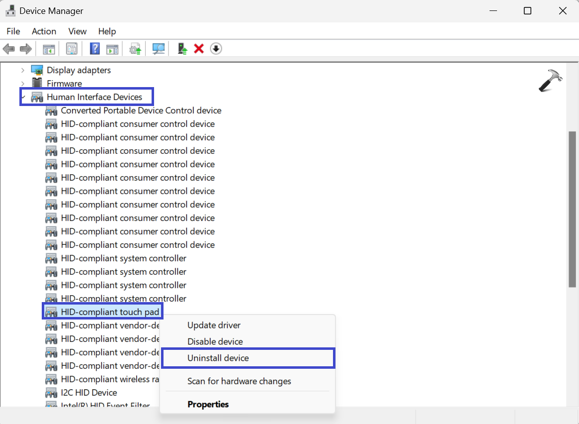 您还可以重新安装触摸板驱动程序。为此,右键单击触摸板驱动程序,然后单击“卸载”。