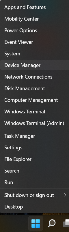 1。右键单击开始并选择装置经理。