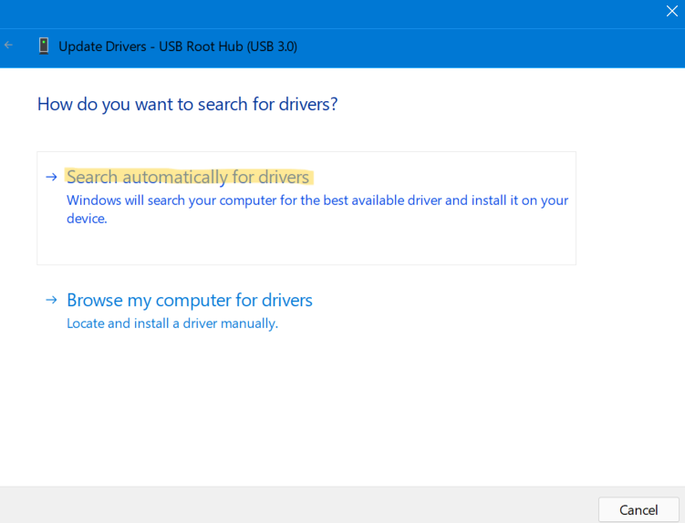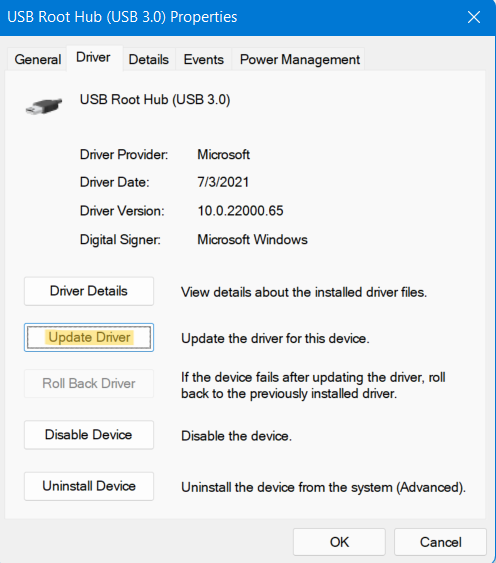 5。这将下载USB根集线器的更新驱动程序。