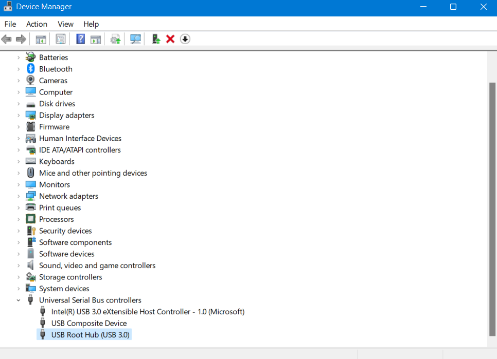 2。现在,扩展通用串行总线控制器并选择USB根集线器(USB 3.0)。