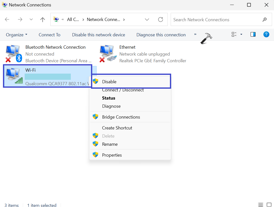 3.等待10秒,再次右键单击网络适配器并选择“使能够”。